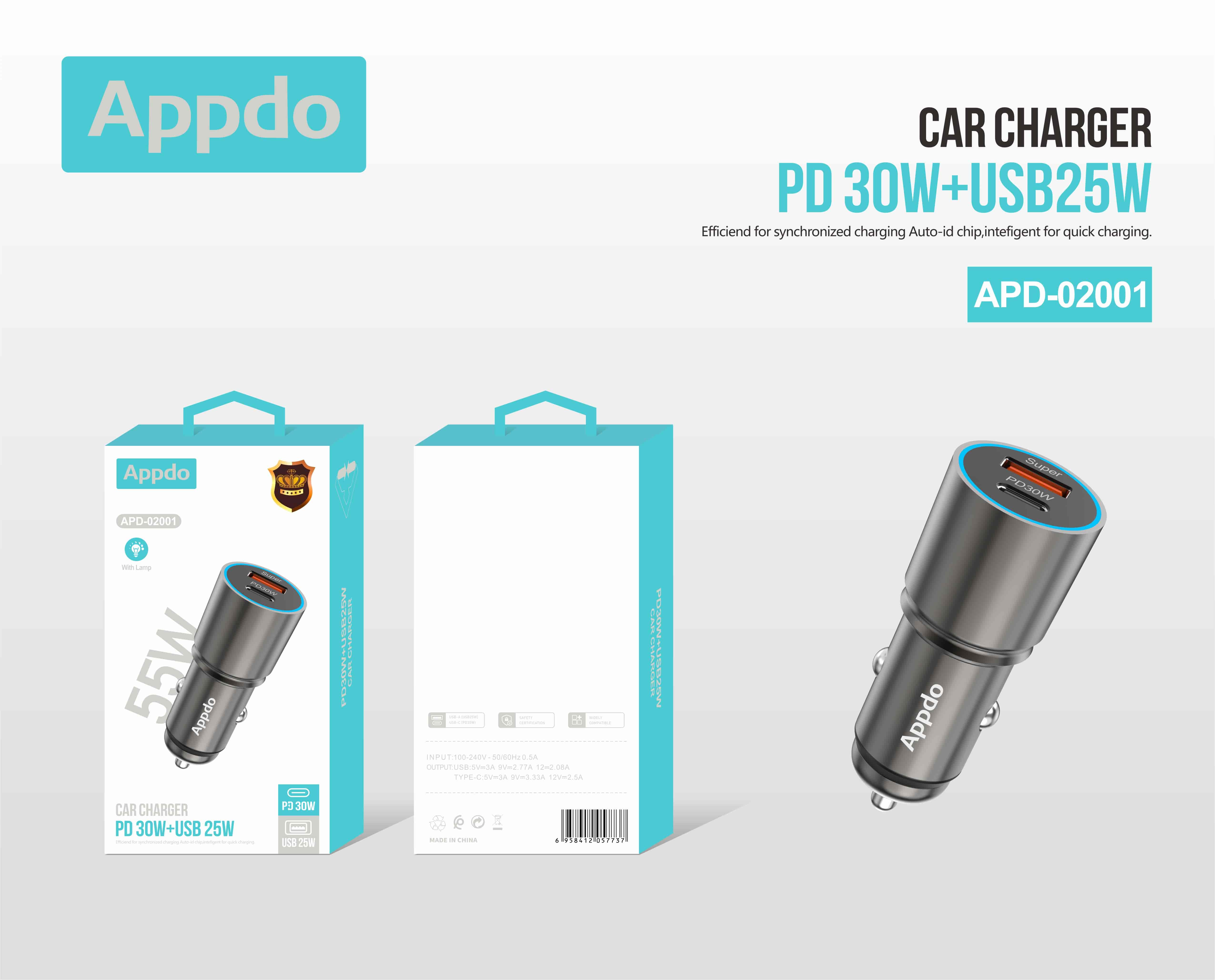 HOME > Products > Chargers > Car charger APD-02001 Car charger Name:Car Charger Output plug:PD/USB Input:12V-24V Output(PD):5V=3A,9V=3A,12V=2.5A Output(Qc3.0):3.6-6.5V=3A,6.5-9V=2A,9-12V=1.5A Product packaging :Welcome to consult We welcome inquiries about brand franchising and partnership opportunities. Submit Back Top