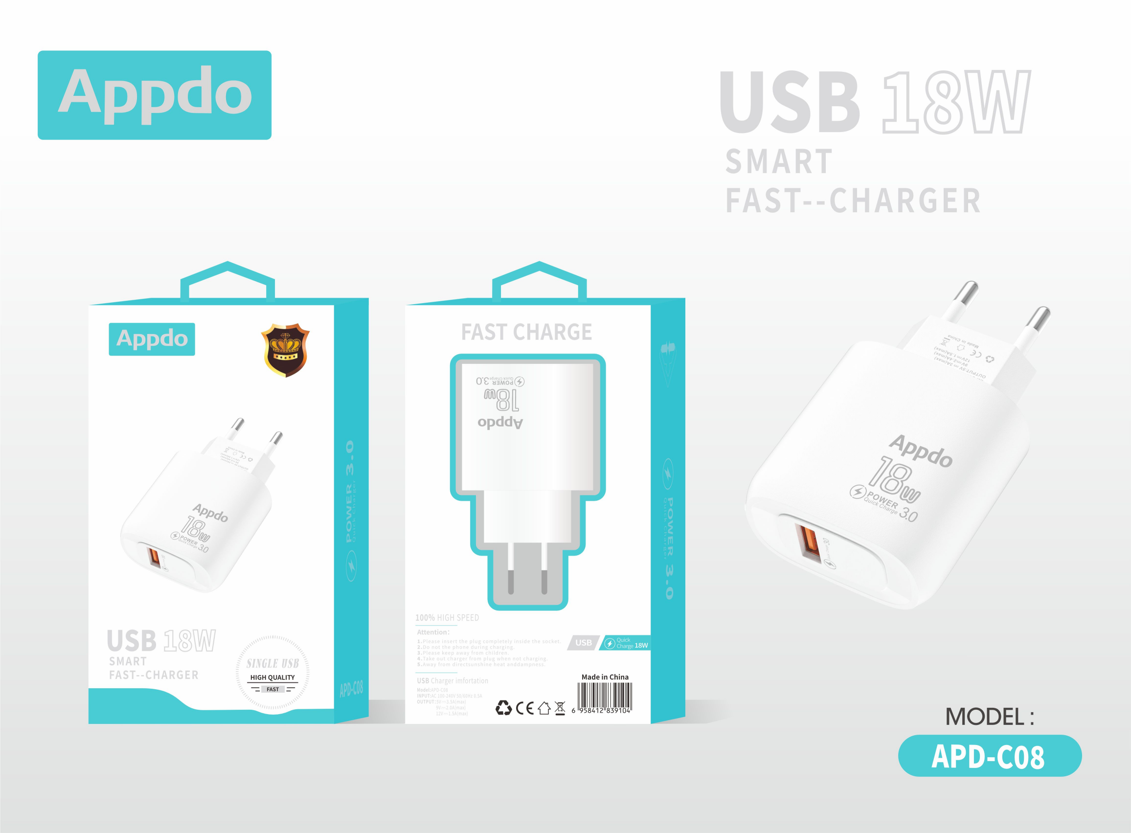 HOME > Products > Chargers > Travel Chargers APD-C08 Charger Product Name:APD-C08 Specification:EU details:18W Packing size:60*50*50 Price:Welcome to consult We welcome inquiries about brand franchising and partnership opportunities. Submit Back Top